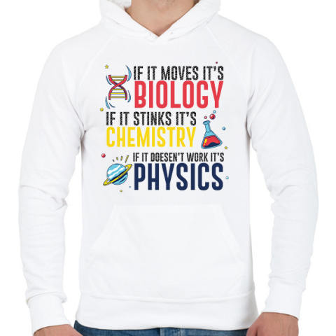 1 kép PRINTFASHION Biológia, kémia, fizika - Férfi kapucnis pulóver - Fehér