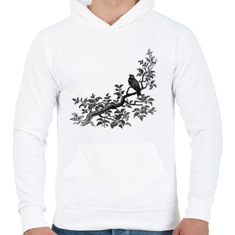 1 kép PRINTFASHION Bird & Tree drawing - Férfi kapucnis pulóver - Fehér