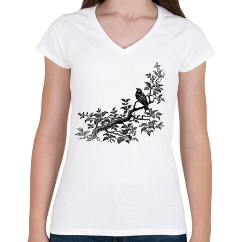 1 kép PRINTFASHION Bird & Tree drawing - Női V-nyakú póló - Fehér