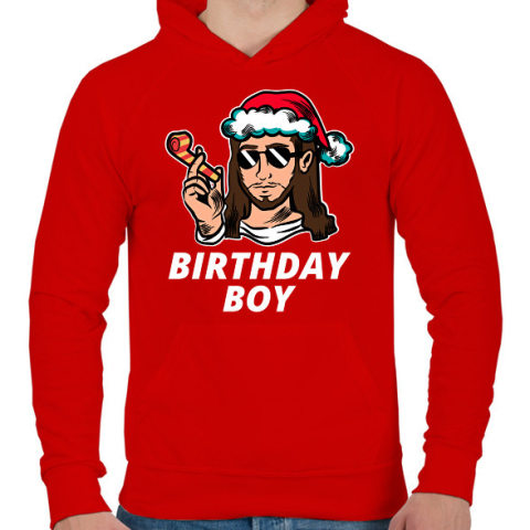 1 kép PRINTFASHION BIRTHDAY BOY - Férfi kapucnis pulóver - Piros