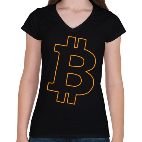 1 kép PRINTFASHION bitcoin - Női V-nyakú póló - Fekete
