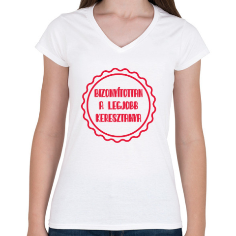 1 kép PRINTFASHION Bizonyítottan a legjobb keresztanya - Női V-nyakú póló - Fehér