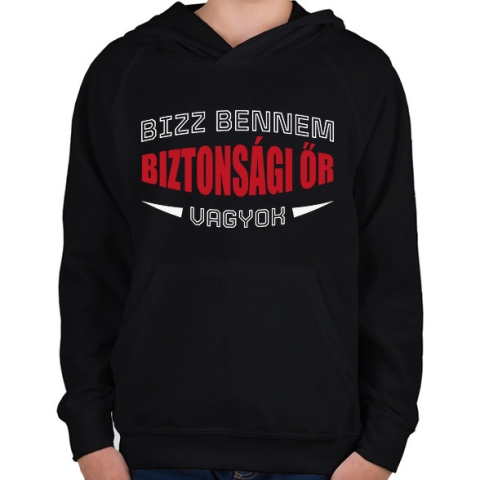 1 kép PRINTFASHION Biztonsági őr vagyok - Gyerek kapucnis pulóver - Fekete