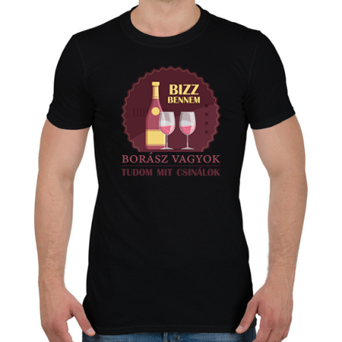 1 kép PRINTFASHION Bízz bennem - Borász vagyok - Férfi póló - Fekete