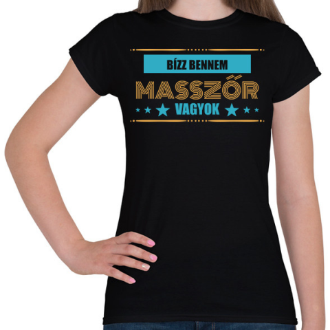 1 kép PRINTFASHION Bízz bennem - masszőr - Női póló - Fekete