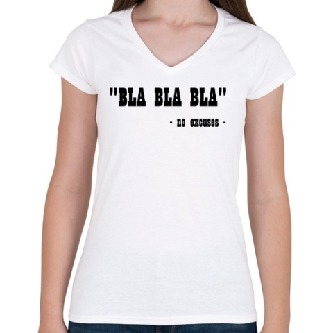 1 kép PRINTFASHION "BLA BLA BLA" - nincs kifogás - Női V-nyakú póló - Fehér