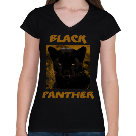 1 kép PRINTFASHION BLACK PANTHER - Női V-nyakú póló - Fekete