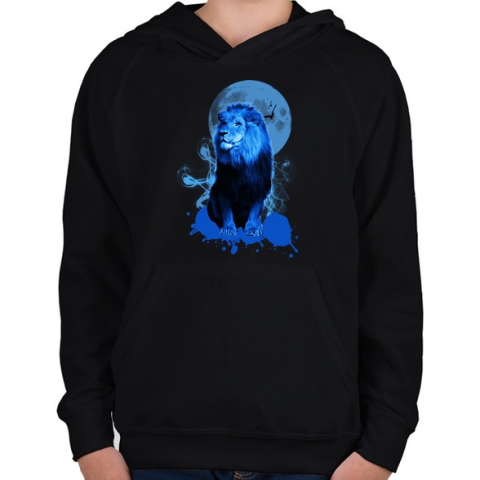 1 kép PRINTFASHION blue lion - Gyerek kapucnis pulóver - Fekete