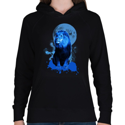 1 kép PRINTFASHION blue lion - Női kapucnis pulóver - Fekete
