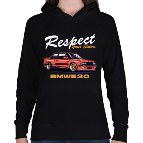 1 kép PRINTFASHION BMW tiszteld az idősebbet - Női kapucnis pulóver - Fekete