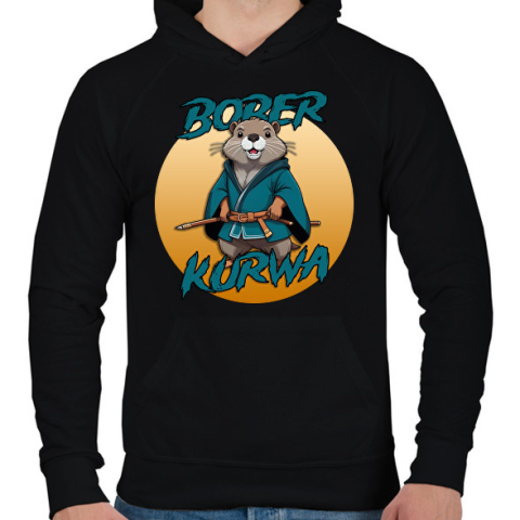 1 kép PRINTFASHION Bober kurwa - Férfi kapucnis pulóver - Fekete