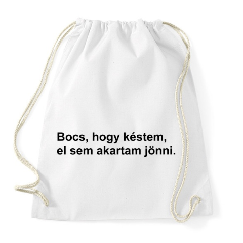 PRINTFASHION Bocs, hogy késtem, el sem akartam jönni - Sportzsák, Tornazsák - Fehér tornazsák 1 kép
