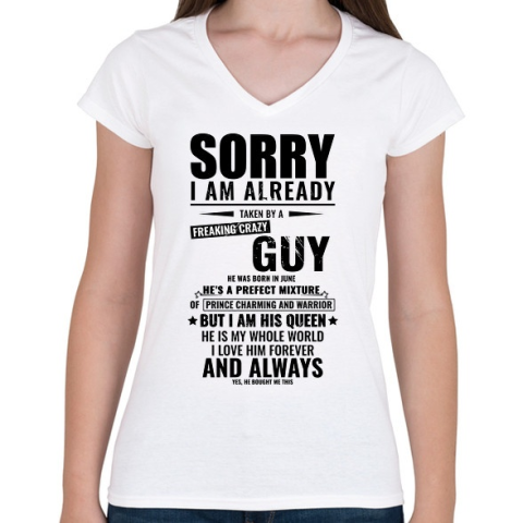 1 kép PRINTFASHION Bocsi, foglalt vagyok - Női V-nyakú póló - Fehér
