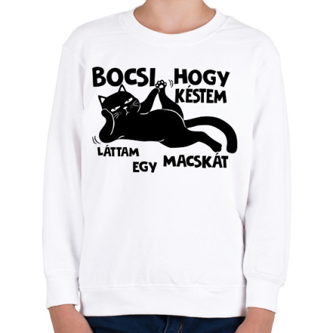 1 kép PRINTFASHION Bocsi hogy késtem láttam egy macskát - Gyerek pulóver - Fehér