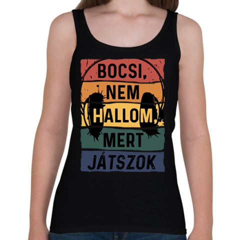 1 kép PRINTFASHION Bocsi, nem hallom, mert játszok - Női atléta - Fekete