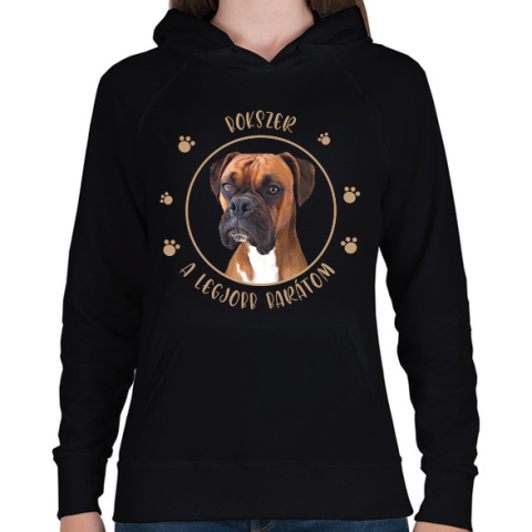 1 kép PRINTFASHION Bokszer - Legjobb barát - Női kapucnis pulóver - Fekete