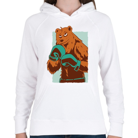 1 kép PRINTFASHION Bokszoló medve - Női kapucnis pulóver - Fehér