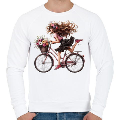 1 kép PRINTFASHION Boldog biciklis lány - Férfi pulóver - Fehér