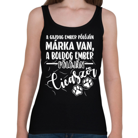 1 kép PRINTFASHION Boldog ember pólóján cicaszőr - Női atléta - Fekete
