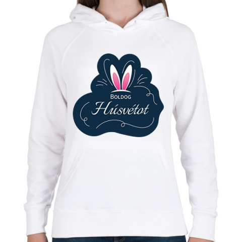 1 kép PRINTFASHION Boldog Húsvétot - Nyuszifüllel - Női kapucnis pulóver - Fehér