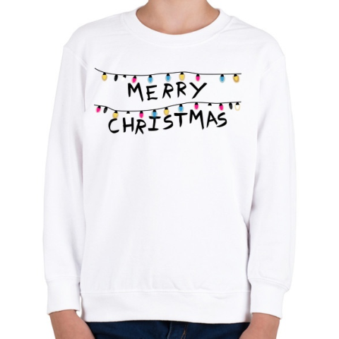 1 kép PRINTFASHION Boldog Karácsonyt - fényfüzér - Gyerek pulóver - Fehér