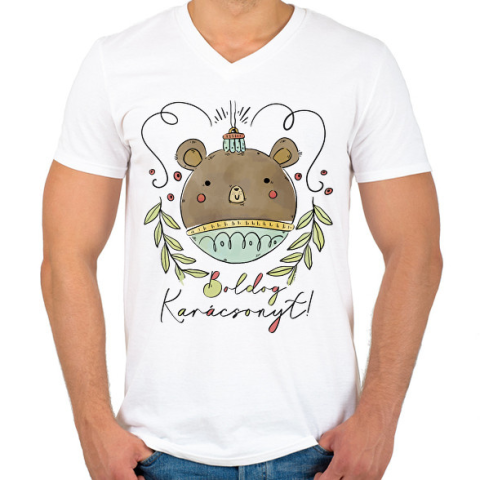 1 kép PRINTFASHION Boldog Karácsonyt! - Férfi V-nyakú póló - Fehér