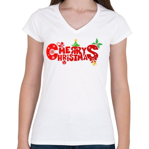 1 kép PRINTFASHION Boldog karácsonyt - Női V-nyakú póló - Fehér
