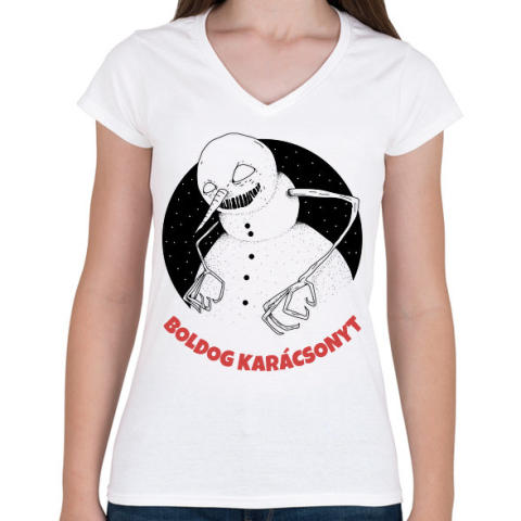 1 kép PRINTFASHION BOLDOG KARÁCSONYT - Női V-nyakú póló - Fehér