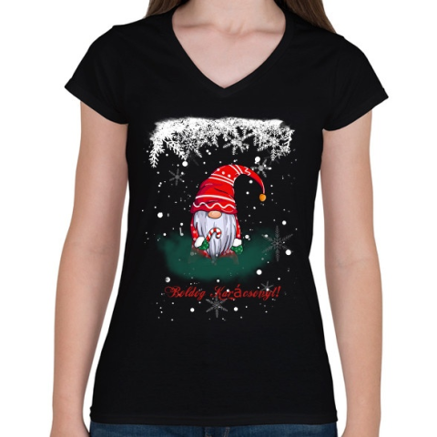 1 kép PRINTFASHION Boldog Karácsonyt! - Női V-nyakú póló - Fekete