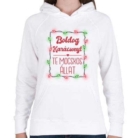 1 kép PRINTFASHION Boldog Karácsonyt te mocskos állat - Női kapucnis pulóver - Fehér
