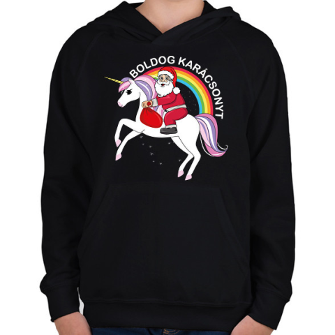 1 kép PRINTFASHION Boldog karácsonyt unikornison - Gyerek kapucnis pulóver - Fekete