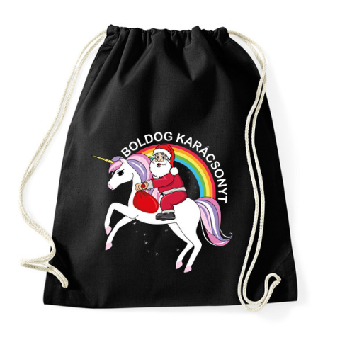 1 kép PRINTFASHION Boldog karácsonyt unikornison - Sportzsák, Tornazsák - Fekete