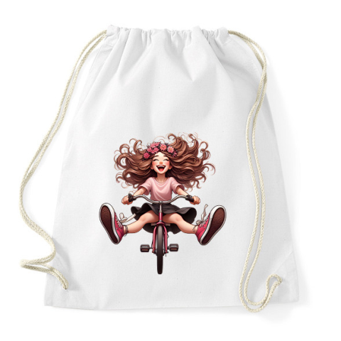 1 kép PRINTFASHION Boldog kerékpáros lány - Sportzsák, Tornazsák - Fehér