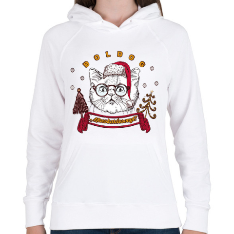 1 kép PRINTFASHION Boldog Macskarácsonyt! - Női kapucnis pulóver - Fehér