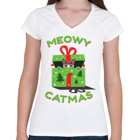 1 kép PRINTFASHION Boldog MacsKarácsonyt! - Női V-nyakú póló - Fehér
