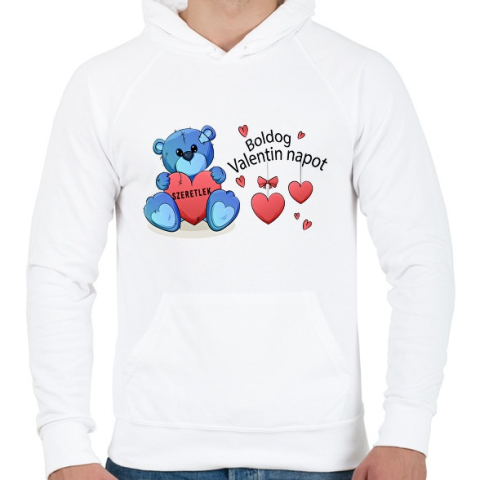 1 kép PRINTFASHION Boldog Valentin Napot - Férfi kapucnis pulóver - Fehér