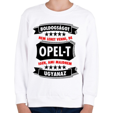 1 kép PRINTFASHION Boldogság = Opel - Gyerek pulóver - Fehér