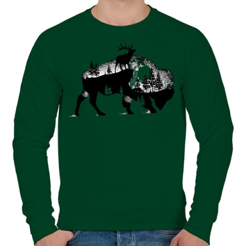1 kép PRINTFASHION Bölény - Férfi pulóver - Sötétzöld