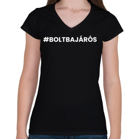 1 kép PRINTFASHION #boltabajáros - Női V-nyakú póló - Fekete