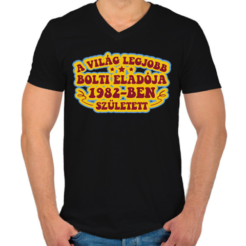 1 kép PRINTFASHION Bolti eladó - Évszámmal - Férfi V-nyakú póló - Fekete