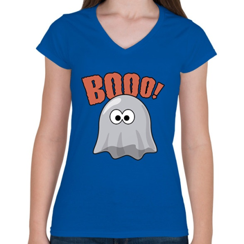1 kép PRINTFASHION Booo! - Női V-nyakú póló - Királykék
