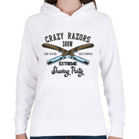 1 kép PRINTFASHION Borbély 03 - Crazy razors - Női kapucnis pulóver - Fehér