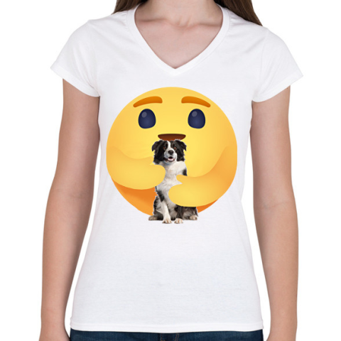 1 kép PRINTFASHION Border collie - Női V-nyakú póló - Fehér