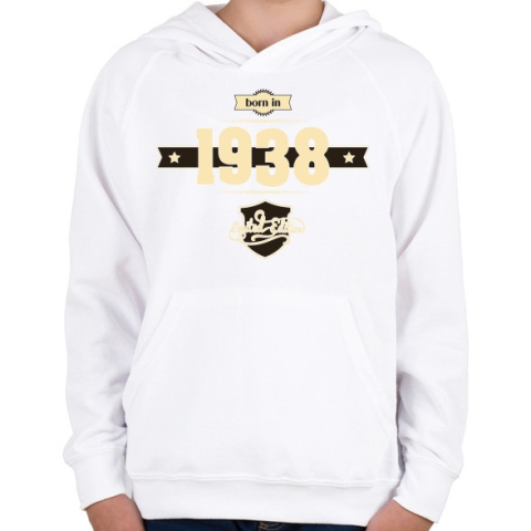 1 kép PRINTFASHION born-in-1938-cream-choco - Gyerek kapucnis pulóver - Fehér