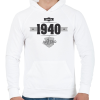 1 kép    PRINTFASHION born-in-1940-(dark&lightgrey) - Férfi kapucnis pulóver - Fehér