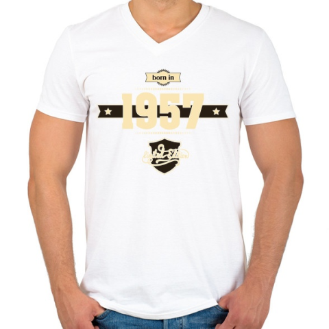 1 kép PRINTFASHION born-in-1957-cream-choco - Férfi V-nyakú póló - Fehér
