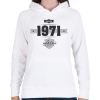 1 kép PRINTFASHION born-in-1971-(dark&lightgrey) - Női kapucnis pulóver - Fehér