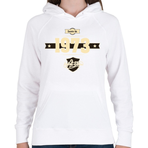 1 kép PRINTFASHION born-in-1973-cream-choco - Női kapucnis pulóver - Fehér