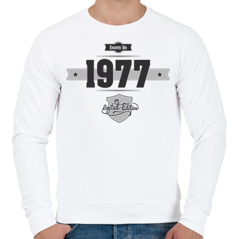 1 kép PRINTFASHION born-in-1977-(dark&lightgrey) - Férfi pulóver - Fehér
