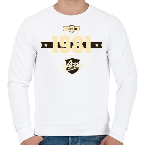 1 kép PRINTFASHION born-in-1981-cream-choco - Férfi pulóver - Fehér